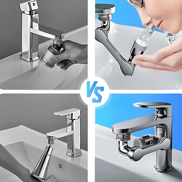 Alcanza fácilmente cada esquina del fregadero con una rotación completa de 1080°, perfecta para lavarte la cara, enjuagar platos o limpiar el fregadero.