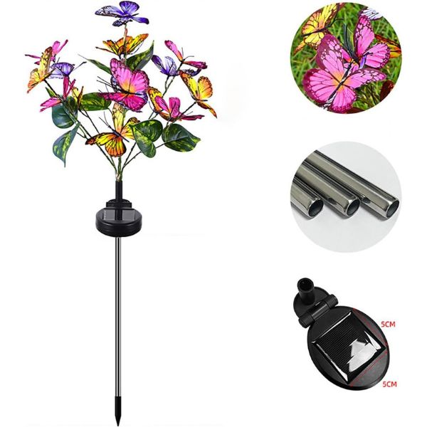 🦋 ¡Decora tu jardín para disfrutar de las hermosas noches de verano! Disfruta de tus fiestas y cenas al aire libre contemplando las encantadoras mariposas luminosas que cobran vida gracias a la energía solar. ¡Dan un toque único y mágico a cualquier lugar!