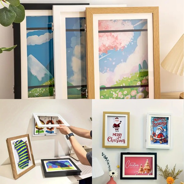 Muestra con orgullo las obras de arte de tus hijos, pinturas, fotos familiares o postales en tus paredes. El diseño moderno de FRAMELET te permite rotar y exhibir nuevas piezas fácilmente, manteniendo tus paredes siempre frescas y llenas de personalidad.