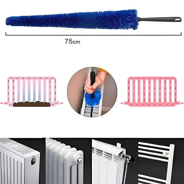 No es necesario desmontar las rejillas de tu radiador. DUSTOFF está hecho a medida para la limpieza de radiadores. Su carga electrostática atrae el polvo y la suciedad, por lo que es ideal para radiadores tipo panel, columna, lobulados, tipo escalera y toalleros.