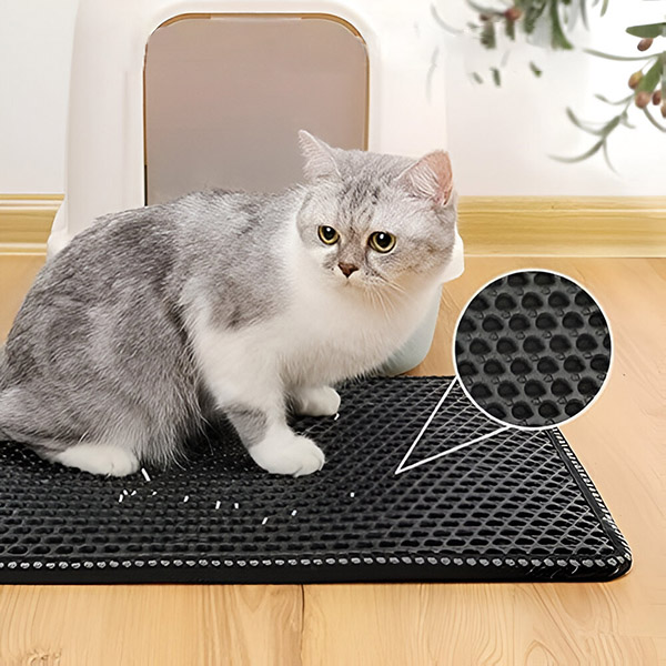 🐾 Coloca la alfombrilla junto a la caja de arena para gatos.