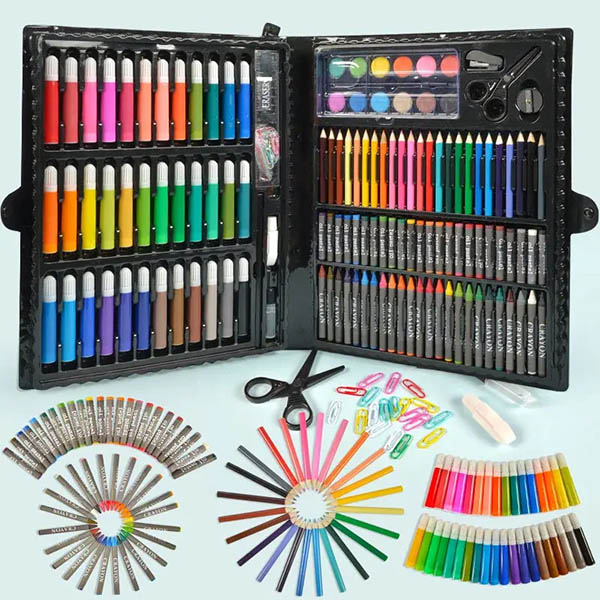 Esto es más que un estuche de lápices. Son 150 piezas de pura creatividad. Desde bocetos hasta pintura, pegamento y tijeras — todo está dentro.